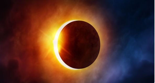 Definition: An occasion when the sun looks like it is completely or partially covered with a dark circle because the moon is between the sun and the earth.